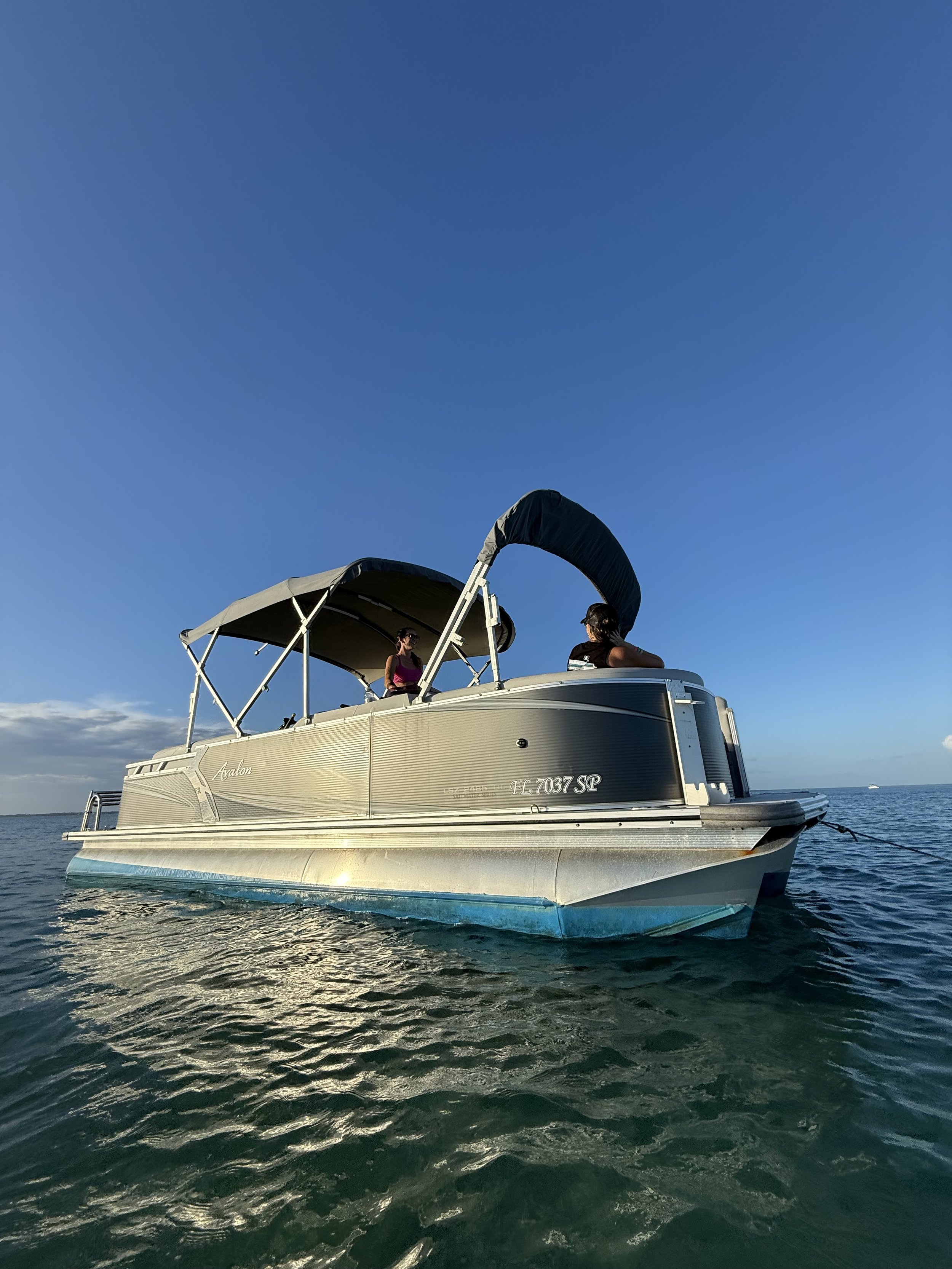 Our boat is 24 feet long and features a full-length cover to protect almost the entire boat. Unlike regular pontoon boats with just two toons, our boat has three toons, providing enhanced stability and a smoother, more enjoyable ride on the water.